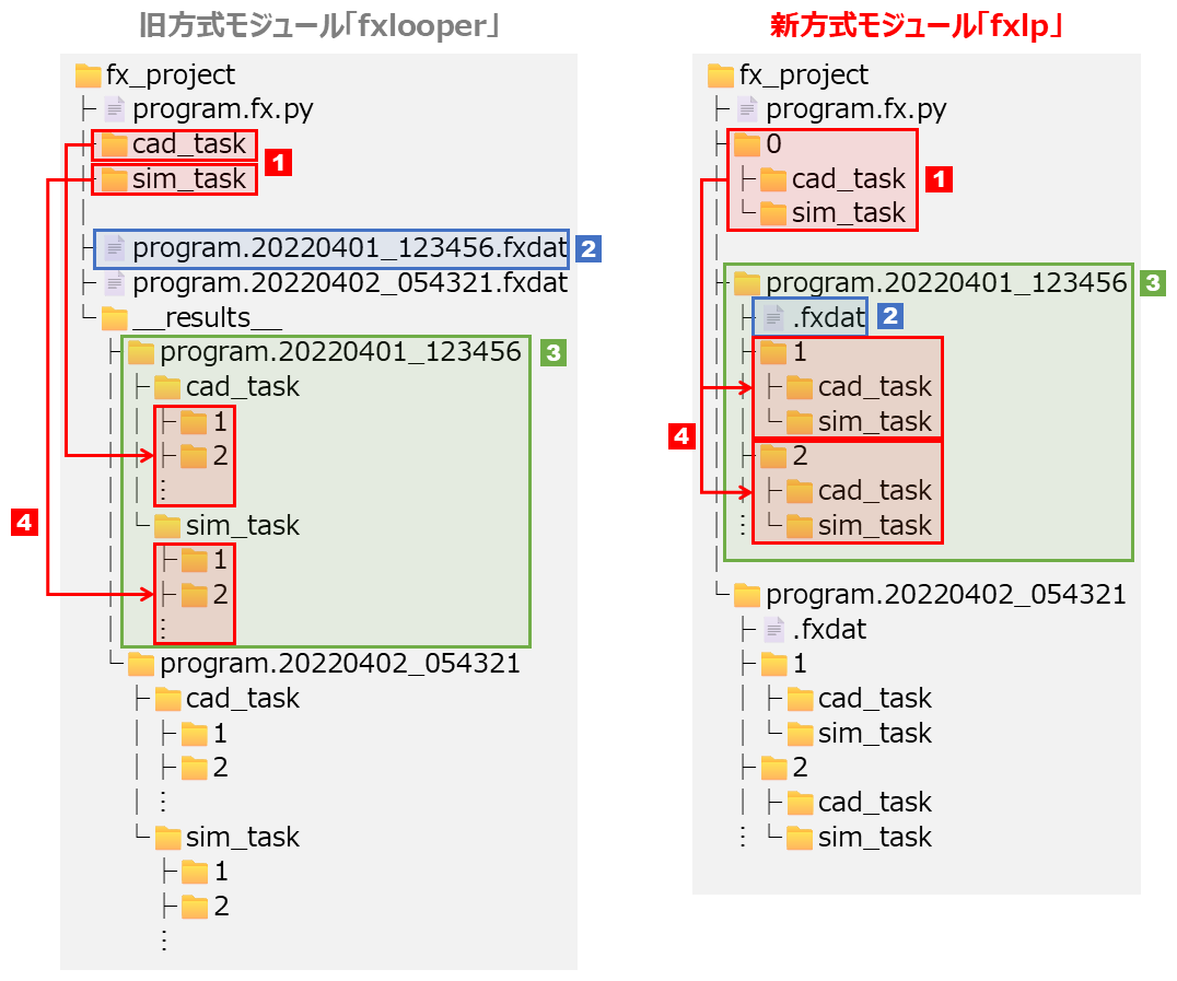 新方式モジュール「fxlp」によるプログラムでは、旧方式の場合とは異なる、以下のようなファイル・フォルダー構成となります。